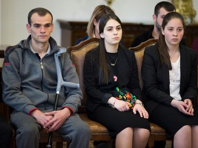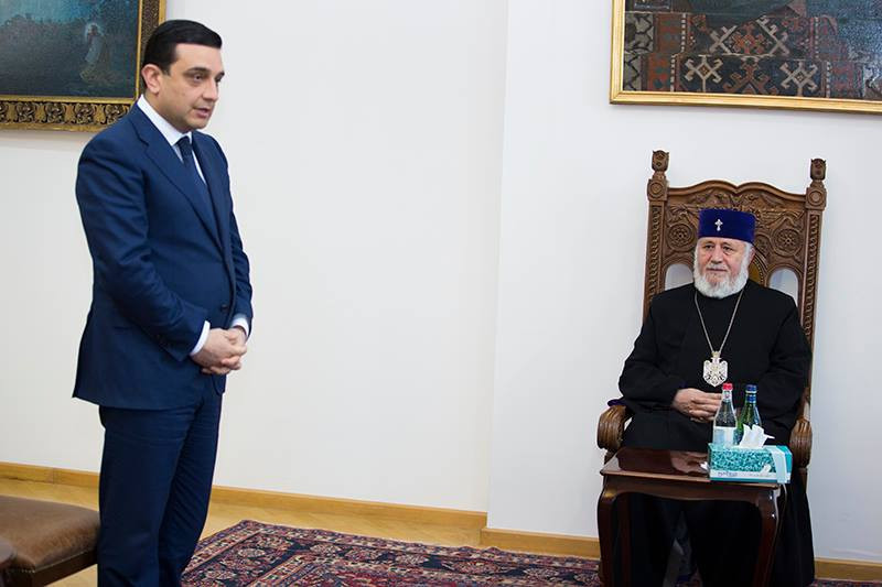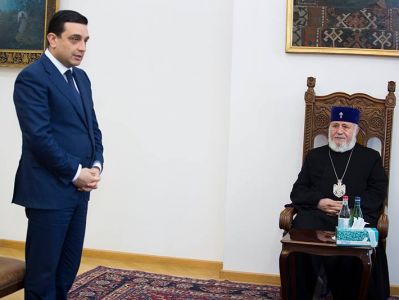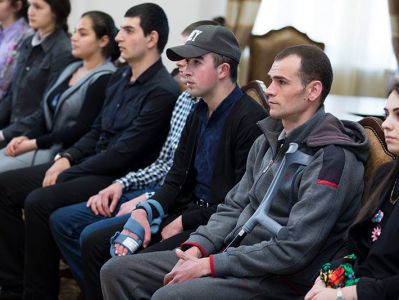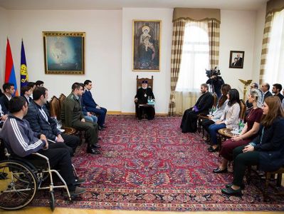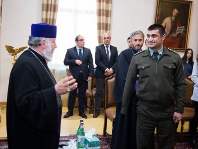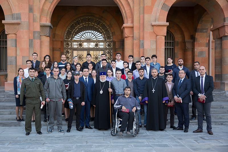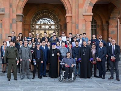 On April 10, in the Mother See of Holy Etchmiadzin, His Holiness Karekin II, Supreme Patriarch and Catholicos of All Armenians; received students from the Yerevan M. Heratsi Medical University, and Heratsi High School, as well as soldiers who have been wounded during military operations. They were accompanied by Mr. Armen Mouradian, Rector of the Heratsi Medical University.