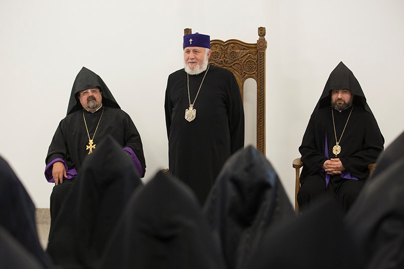 On June 17, in the “KarekinI” Educational Center of the Mother See, His Holiness Karekin II, Supreme Patriarch and Catholicos of All Armenians; had a meeting with the members of the Brotherhood (Very Reverend Fathers, Reverend Fathers and priests), who arrived in Holy Etchmiadzin on the occasion of the Conference of the Brotherhood members to be held from June 18 to 22.