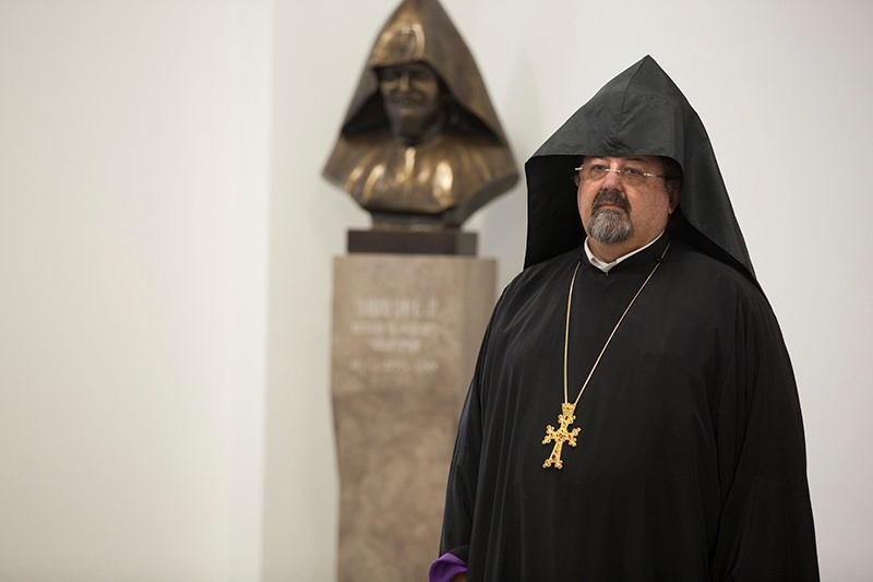 Following the Lord’s Prayer, His Holiness and the Brotherhood members were welcomed by Very Rev. Fr. Sasoun Zmrukhtyan, Spiritual Pastor of St. Kirakos Church in Las Vegas of the Western Diocese of the Armenian Church of North America. IN his remarks, Fr. Sasoun stated with gratitude that it is a great joy for every clergymen to return to the Mother See of Holy Etchmiadzin and receive the blessings of His Holiness Karekin II.