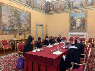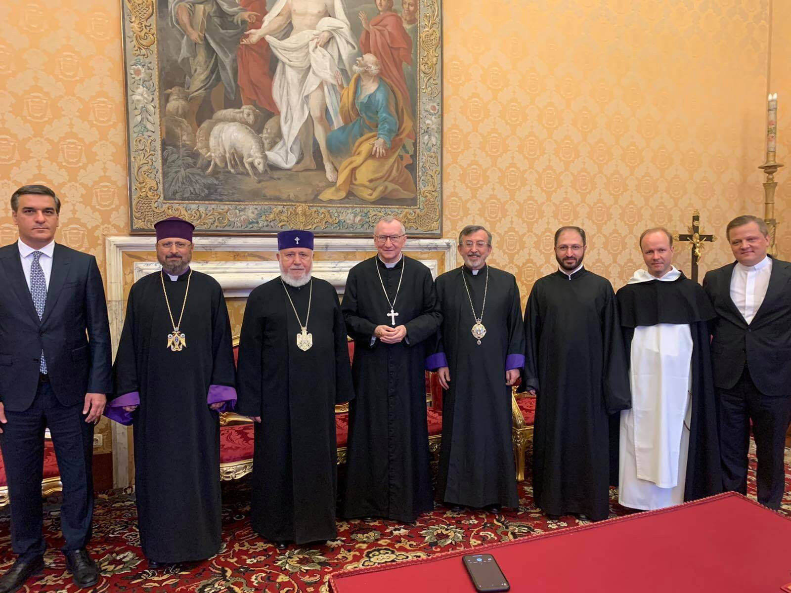 Then, the delegation led by the Pontiff of All Armenians; met with His Eminence Pietro Parolin, Cardinal Secretary of State. During the conversation, reference was made to the situation in the region after the 44-day War of Artsakh. In particular, issues related to the security of the people of Artsakh, the encroachments on the sovereign territories of Armenia, as well as the preservation of the Armenian spiritual and cultural heritage in the territories under the control of Azerbaijan were discussed.