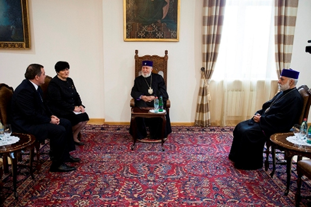 Welcoming the newly appointed Ambassador, His Holiness reflected on the long-standing friendly relations between the two nations and the existing cooperation between Armenia and Georgia. His Holiness also spoke about the Armenian community in Georgia, conveying his personal appreciation to the Georgian authorities for the caring attitude shown towards the Armenian community.