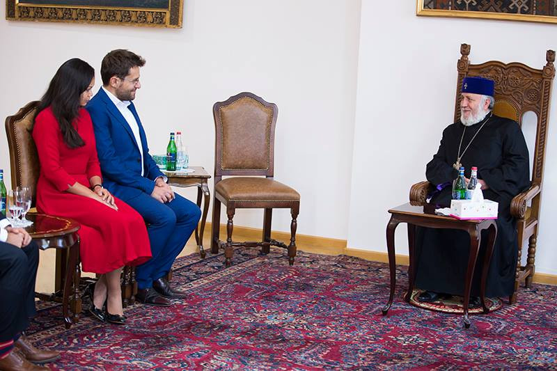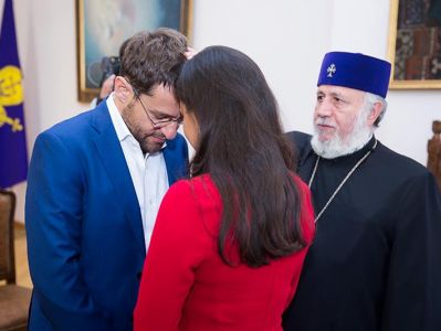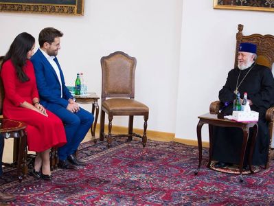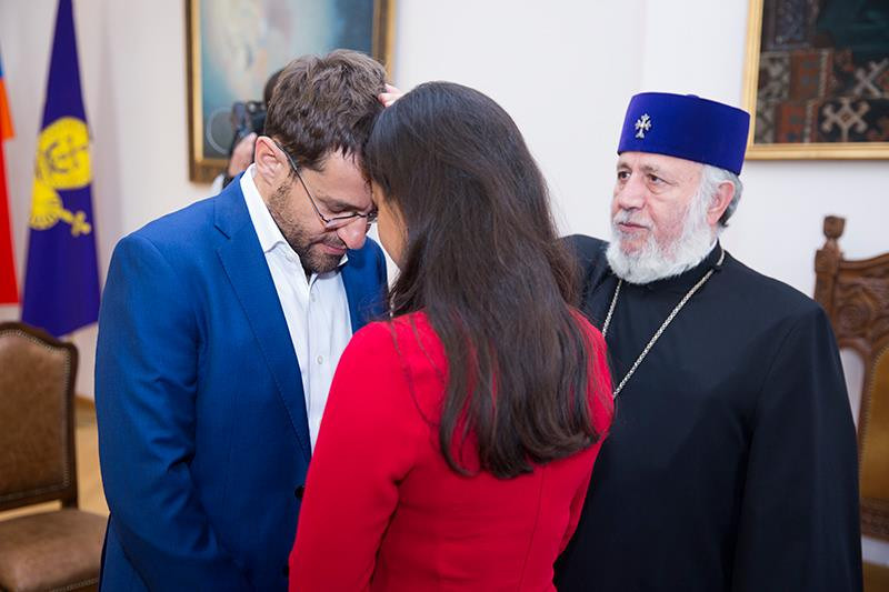 On October 7, in the Mother See of Holy Etchmiadzin, His Holiness Karekin II, Supreme Patriarch and Catholicos of All Armenians; received Mr. Levon Aronian, international chess grandmaster and twice world cup champion; and his wife Ms. Arianne Caoili.