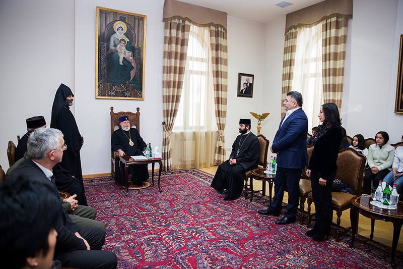 His Holiness expressed his hope that the visit would leave an indelible mark on the souls of the youth and through their spiritual pastors, they would come to associate with the values represented in the wonderment of Holy Etchmiadzin, through which their fathers were inspired and henceforth children of the Armenian nation will be inspired.