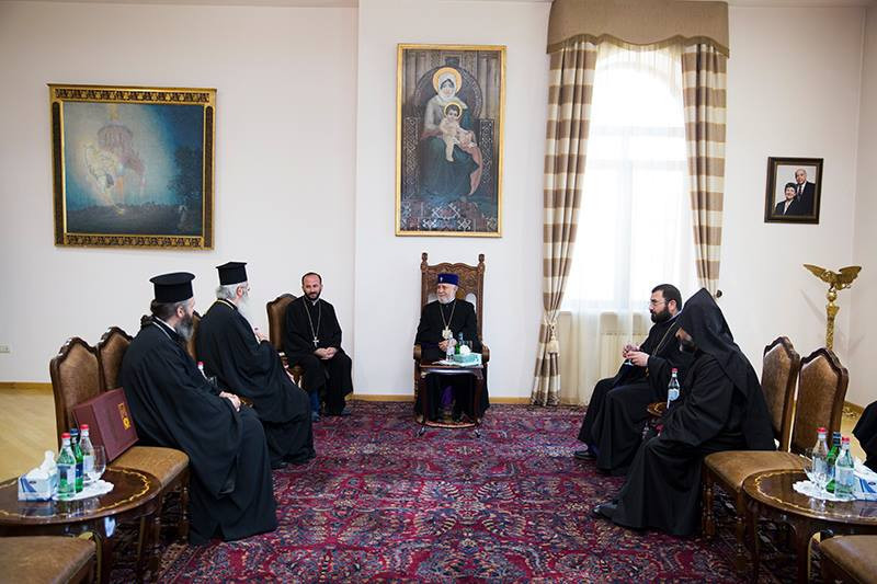 His Holiness expressed his joy on the occasion of the visit of the high-ranking clergy of the Greek Orthodox Church, and stressed the importance of the close cooperation and cordial relations between the two Churches and the Armenian and Greek people.