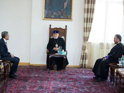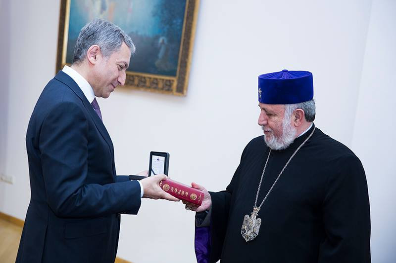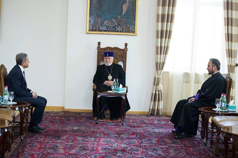 On June 1, in the Mother See of Holy Etchmiadzin, His Holiness Karekin II, Supreme Patriarch and Catholicos of All Armenians; received Mr. Ashot Manookian, Minister of Energy Infrastructures and Natural Resources of the Republic of Armenia.