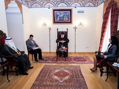 On March 23, in the Mother See of Holy Etchmiadzin, His Holiness Karekin II, Supreme Patriarch and Catholicos of All Armenians; received Mr. Yaqoub Al-Sanea, Minister of Justice, Minister of Religious Estates and Islamic Affairs of Kuwait, and his delegation. They were accompanied by the Minister of Justice Arpine Hovhannisyan of the Republic of Armenia and Mr. Fadey Charchoghlyani, Ambassador, Extraordinary and Plenipotentiary of Kuwait to the Republic of Armenia.