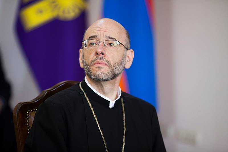 Rev. Fr. Daniel Findikyan, a member of the Brotherhood of Holy Etchmiadzin, Director of the Clara and Zohrab Information Center (Eastern Diocese of the USA), and co-founder of the conference; introduced the guests to His Holiness, expressing appreciation for the warm hospitality and the invitation to convene the conference in Holy Etchmiadzin.