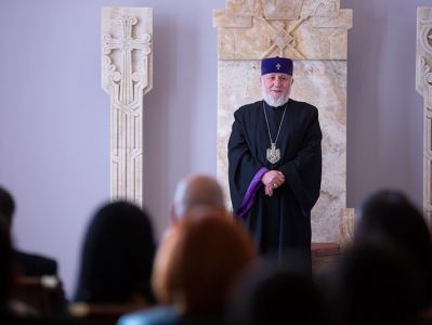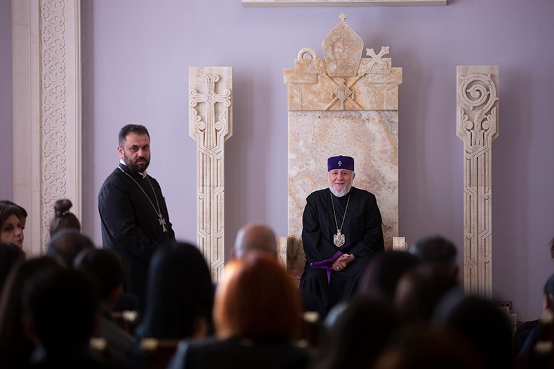 His Holiness conveying his blessings to the pilgrims, exhorted them to remain faithful to the traditional family values, preserve national-spiritual traditions with zeal, and to be strengthened by Holy Etchmiadzin.