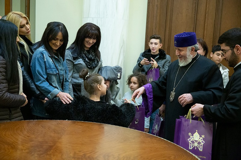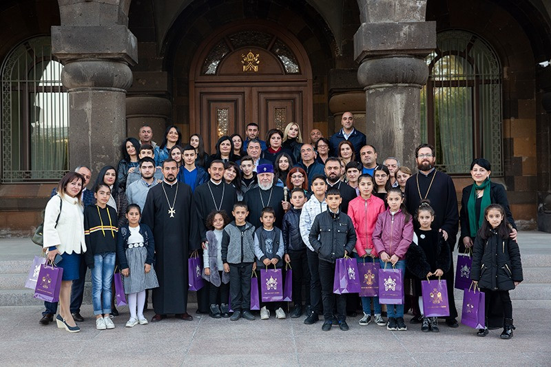 On 05 November, in the Mother See of Holy Etchmiadzin His Holiness Karekin II, Supreme Patriarch and Catholicos of All Armenians; received a group of pilgrims from the communities of Ararat, Artashat and Vedi of Ararat region. They were accompanied by Rev. Fr. Markos Mangasaryan, Head of the Social Services Office of the Mother See and led by Fr. Tatul Gasparyan, Spiritual pastor of St. Hovhannes the Evangelist church of Artashat, Fr. Davit Sahakyan, Spiritual pastor of St. Hakob Church of Ararat and Fr. Hovakim Harutyunyan, Spiritual pastor of the Holy Mother of God church of Vedi.