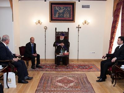 On April 24 in the Mother See, His Holiness Karekin II, Supreme Patriarch and Catholicos of All Armenians; received Mr. Sophocles Fittis, Vice-Chairman of the House of Representatives of Cyprus and Head of the Cyprus delegation to the OSCE Parliamentary Assembly; and Mr. Constantine Christofides, Rector of the University of Cyprus. They were accompanied by Mr. Eduard Sharmazanov, Vice President of the Republic of Armenia National Assembly. The representatives had arrived in Armenia to attend the second Global Forum “Against the Crime of Genocide”.