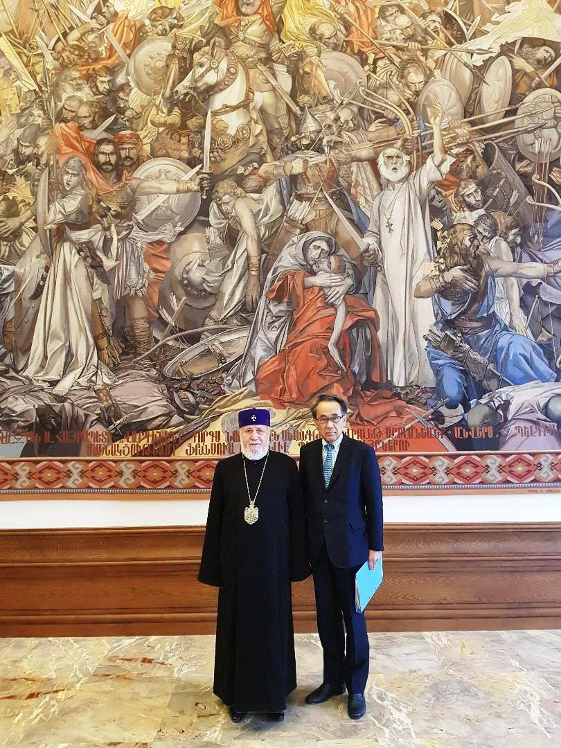On October 17, in the Mother See of Holy Etchmiadzin, His Holiness Karekin II, Supreme Patriarch and Catholicos of All Armenians; hosted Mr. Eiichi Hasegawa, Special Adviser to the Prime Minister of Japan, accompanied by Mr. Jun Yamada, Ambassador Extraordinary and Plenipotentiary of Japan to the Republic of Armenia.