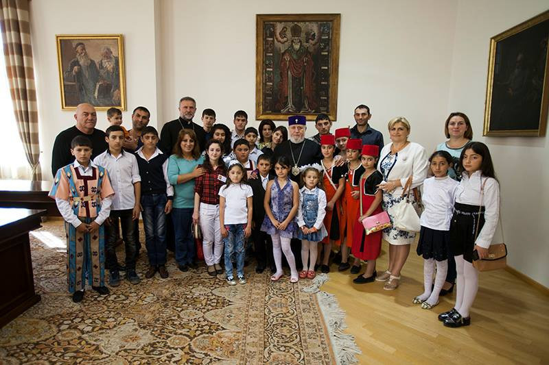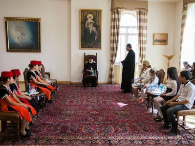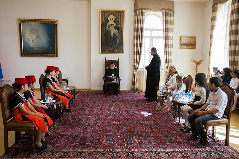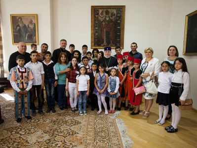 His Holiness voiced confidence that the visit would be a good opportunity for the youth to learn about the homeland and be strengthened in their patriotic feelings and encouraged with faith. His Holiness also spoke with the children about their impressions of the visit and their daily routine, then distributed gifts.