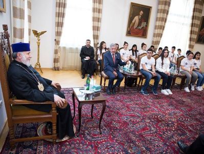 At the conclusion of the meeting, His Holiness urged the students to be worthy sons and daughters of the nation, and growing up with this awareness, bring their usefulness to the Armenian nation.