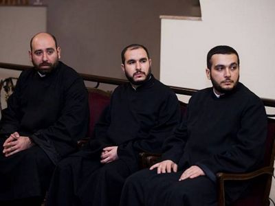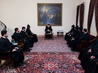 On February 2, following the Evening Service, His Holiness Karekin II, Supreme Patriarch and Catholicos of All Armenians; received the newly ordained priests: Rev. Fr. Vazgen Petrosyan; Rev. Fr. Geghard Hovhannisyan; Rev. Fr. Makar Galamdaryan; Rev. Fr. Aris Khachatryan; Rev. Fr. Sevak Saribekyan; Rev. Fr. Hrachya Gyozalyan; Rev. Fr. Vagharsh Isakhanyan; Rev. Fr. Grigoris Dermenjyan; Rev. Fr. Zareh Ashuryan; Rev. Fr. Sedrak Aghasyan; Rev. Fr. Artsrun Mikaelyan and Rev. Fr. Ghukas Balayan. They were accompanied by His Grace Bishop Hovnan Hakobyan, Grand Sacristan of the Mother See and His Grace Bishop Mkrtich Proshyan, Primate of the Diocese of Aragatsotn.