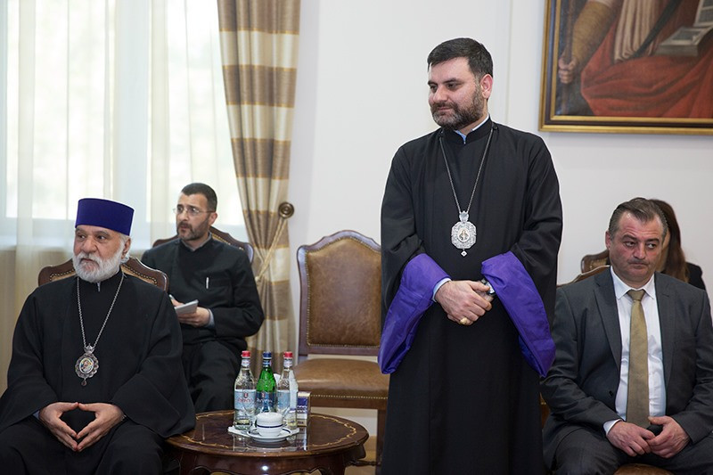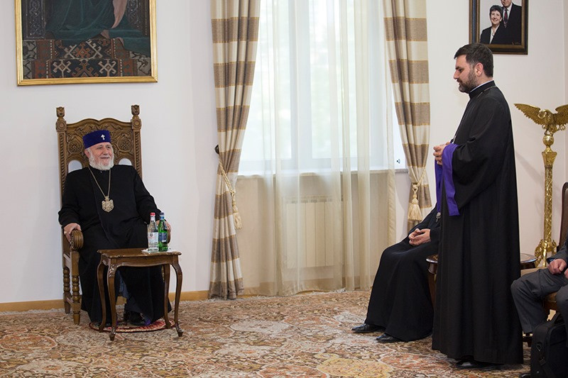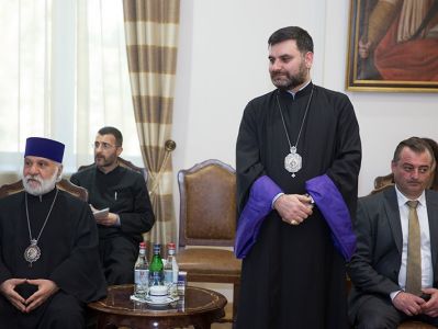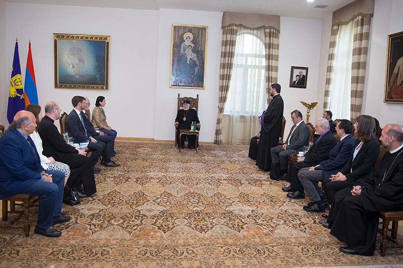 On May 12, in the Mother See of Holy Etchmiadzin, His Holiness Karekin II, Supreme Patriarch and Catholicos of All Armenians; received the delegation of His Grace Bishop Tiran Petrosyan, Patriarchal Delegate of Central Europe and Sweden, arrived to Armenia from Austria on the occasion of the Episcopal ordination and consecration. The Delegation consists of "Pro Oriente" church organization members, clergymen of Austrian Catholic and Syriac Orthodox Churches, representatives of the Department of Catholic Theology of the Vienna State University as well as representatives of various state structures.