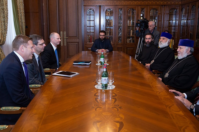 On December 16, in the Mother See of Holy Etchmiadzin, His Holiness Karekin II, Supreme Patriarch and Catholicos of All Armenians; received the delegation of the Museum of the Bible of Washington. They were led by Mr. Jeffrey Kloha, Chief Curatorial Officer at Museum of the Bible. It was the second visit of the delegation to the Mother See. The Museum plans to organize an exhibition entitled "The Breath of God" dedicated to the Armenian Bible and the Armenian Church art, in 2021.