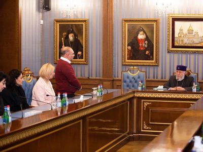 At the beginning of the meeting, on behalf of the Heads of the Youth Centers, teachers and students, Mr. Hayk Gazazyan, acting director of the central office of the Youth Centers, congratulated the Catholicos of All Armenians on the occasion of Christmas, and expressed his gratitude to the Pontiff of All Armenians for the Pontifical care and attention towards the Youth Centers.