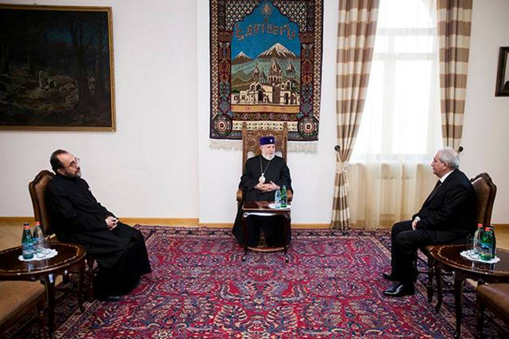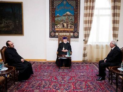 On March 10, in the Mother See of Holy Etchmiadzin, His Holiness Karekin II, Supreme Patriarch and Catholicos of All Armenians; received Mr. Hovsep Simonyan, the newly appointed governor of Shirak and His Grace Bishop Michael Ajapahyan, Primate of the Diocese of Shirak.