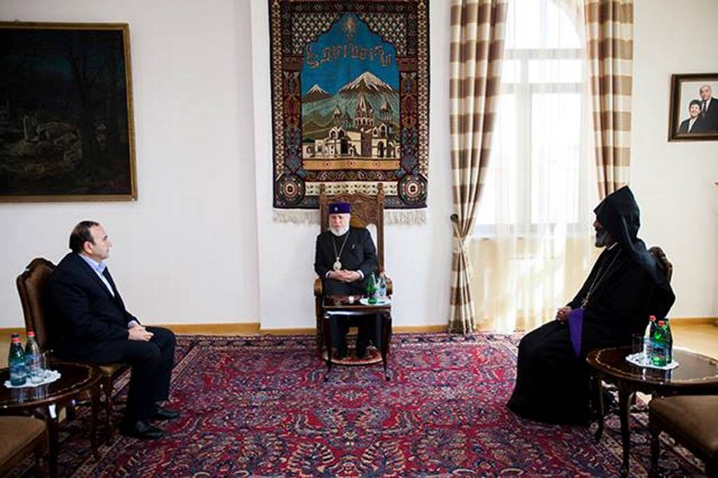 The Catholicos of All Armenians congratulated Minister Mkrtchyan on the occasion of his new appointment and conveyed his best wishes. Stressing the education system as key and essential, His Holiness expressed hope that given his rich experience and familiarity with the sector, the Minister will offer useful service in the field of education.
