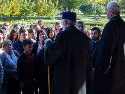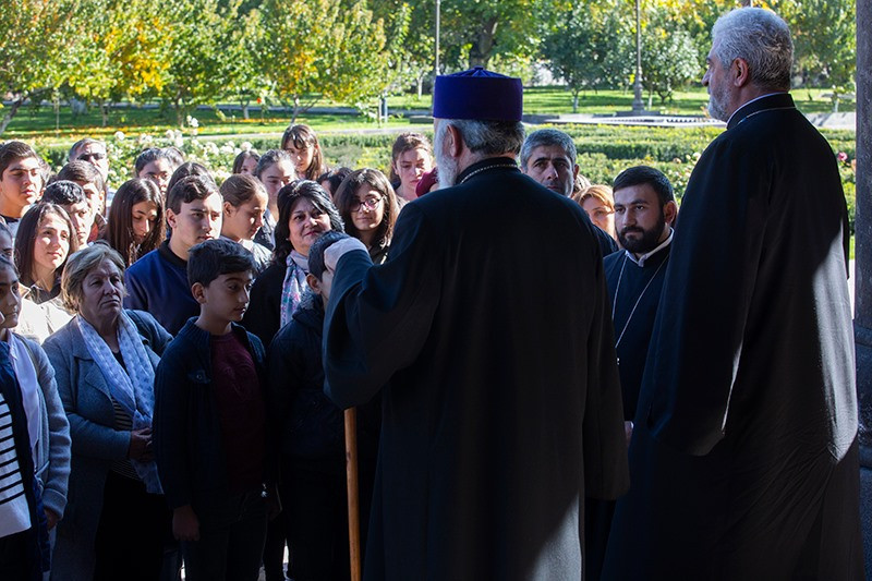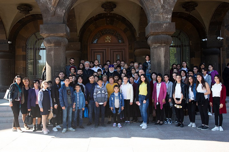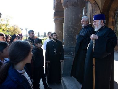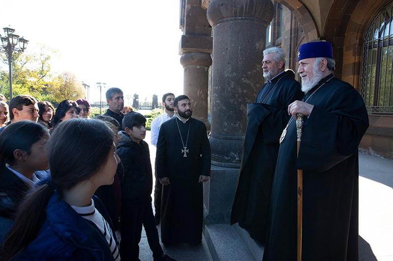 On November 03, in the Mother See of Holy Etchmiadzin, His Holiness Karekin II, Supreme Patriarch and Catholicos of All Armenians; received over a hundred pupils and teachers from Dashtavan, Zorak and Nizami villages of Masis town. They visited the Spiritual Center of All Armenians to bring their filial honor and congratulations to His Holiness on the 20 th anniversary of his enthronement.