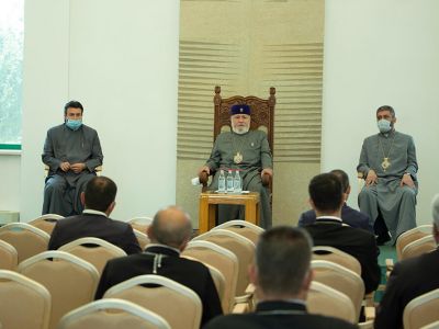 The meeting began with the Lord's Prayer, following which Archbihsop Sion, asking for the Blessings of His Holiness, expressed his joy for the visit to the Mother See. In his remarks, His Eminence confirmed that the clergy continues to implement its spiritual mission in those difficult conditions of pandemic. The Archbishop also expressed his deep gratitude to the Armenian Pontiff for the assistance provided to the socially vulnerable families in those pandemic conditions.