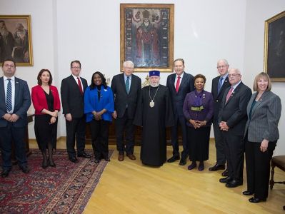 On April 17, in the Mother See of Holy Etchmiadzin, His Holiness Karekin II, Supreme Patriarch and Catholicos of All Armenians; received the United States Congressional Delegation. They were accompanied by Deputies of the National Assembly of the Republic of Armenia: Mr. Hovhannes Hovhannisyan; Mrs. Gayane Abrahamyan and Mrs. Lynne Tracey, US Ambassador Extraordinary and Plenipotentiary to Armenia.