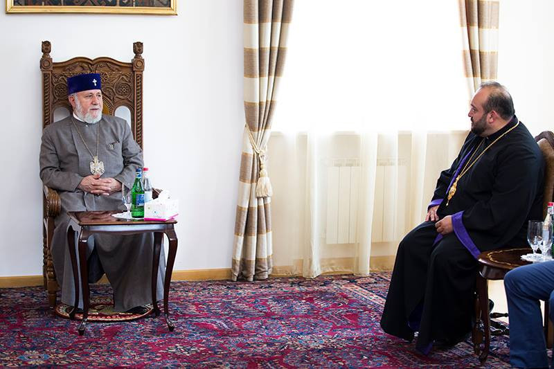 During the meeting, Bishop Hovakim informed His Holiness that through the efforts of benefactors Mr. and Mrs. Raffi and Alice Tanielian, and Mr and Mrs. Shahan and Eliza Tenjoukian; the sportsmen traveled to Armenia to participate in the 10th Pan-Armenian Homenetmen Games.