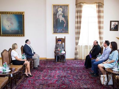 On July 20, in the Mother See of Holy Etchmiadzin, His Holiness Karekin II, Supreme Patriarch and Catholicos of All Armenians; received representatives of the Armenian General Athletic Union (AGAU) of London. They were accompanied by His Grace Bishop Hovakim Manookian, Primate of the Armenian Diocese of Great Britain and Ireland.