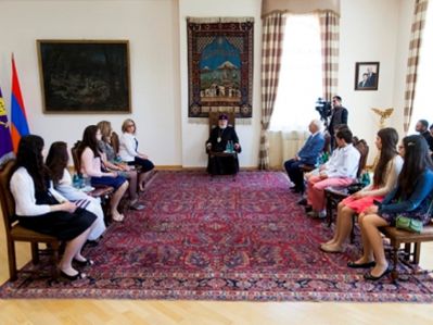 Catholicos of All Armenians Receives Students from the Hovnanian School of New Jersey