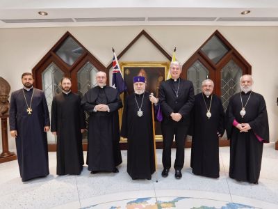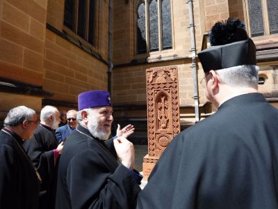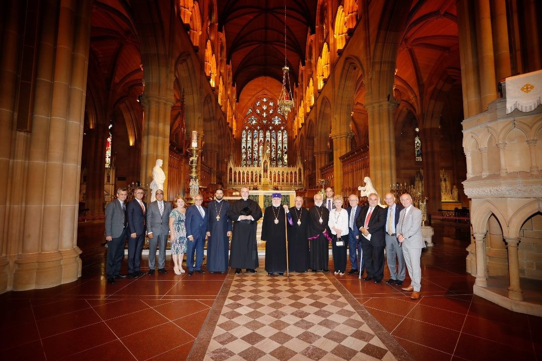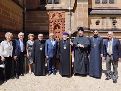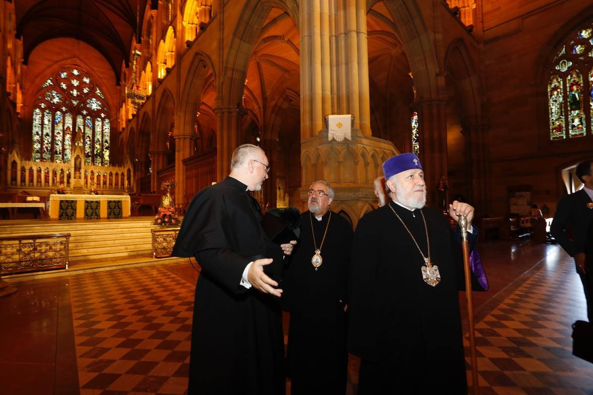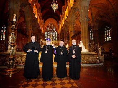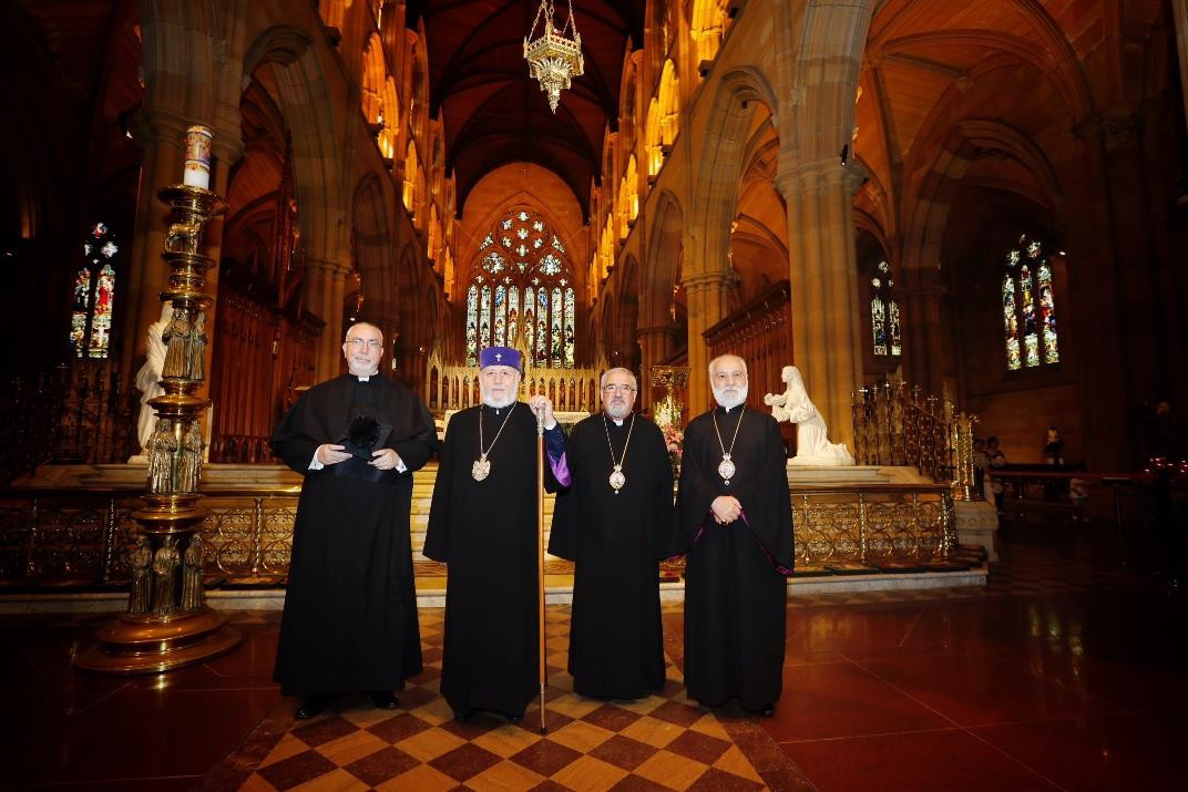 On February 4, within the framework of the Pontifical visit to Australia, His Holiness Karekin II, Supreme Patriarch and Catholicos of All Armenians; accompanied by the retinue visited the St. Mary's Catholic Mother Cathedral in Sydney. On the occasion of the 100th anniversary of the Armenian Genocide, His Grace Bishop Haikazoon Najaryan offered a Divine Liturgy in this Cathedral, in the presence of about 2000 faithful and led by His Eminence Archbishop Anthony Fisher, Primate of the Catholic Diocese of Sydney.