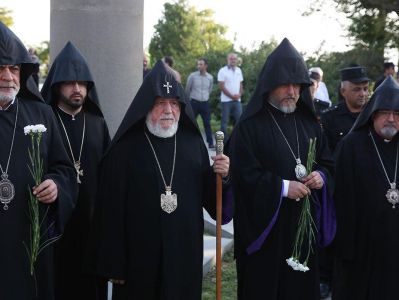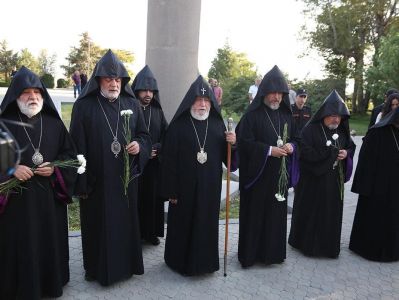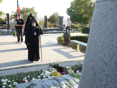 On September 21, on the occasion of the Independence Day of the Republic of Armenia, His Holiness Karekin II, Supreme Patriarch and Catholicos of All Armenians; together with the Episcopal clergymen and the Brotherhood of the Mother See of Holy Etchmiadzin, visited the "Yerablur" Military Pantheon to pay tribute to the memory of the Armenians who sacrificed their lives for the defense of the motherland.
