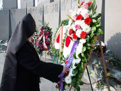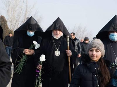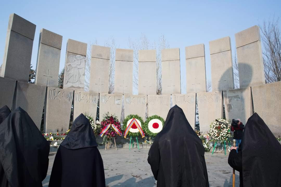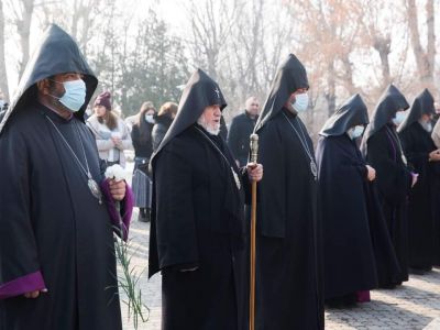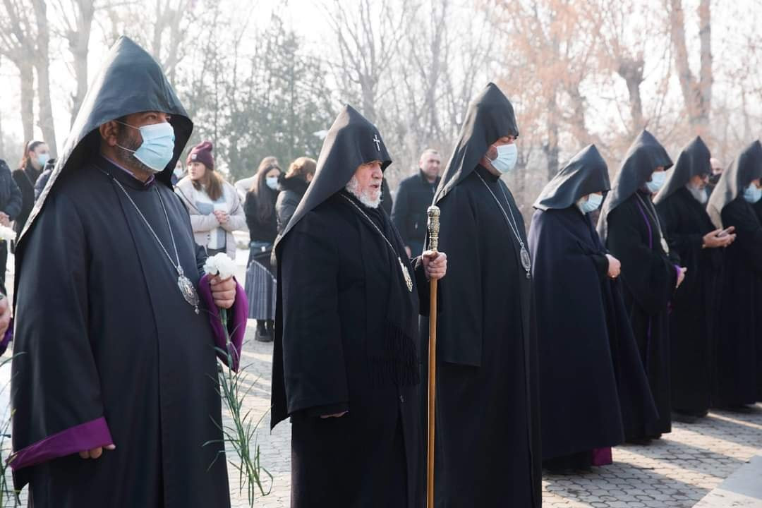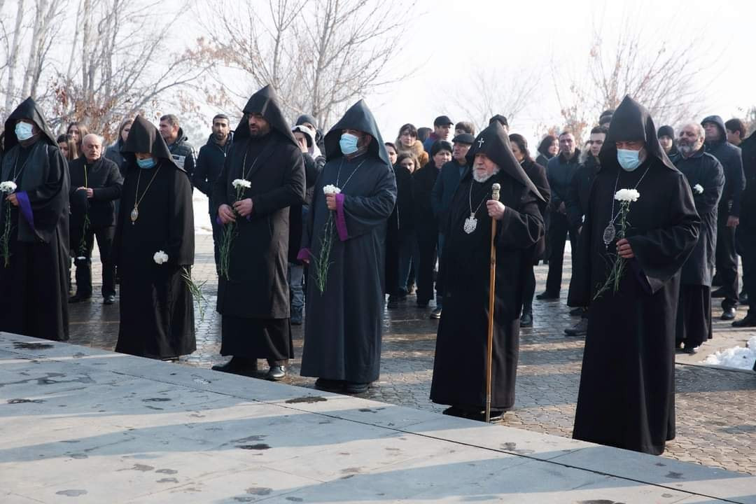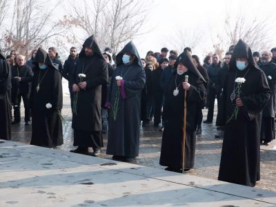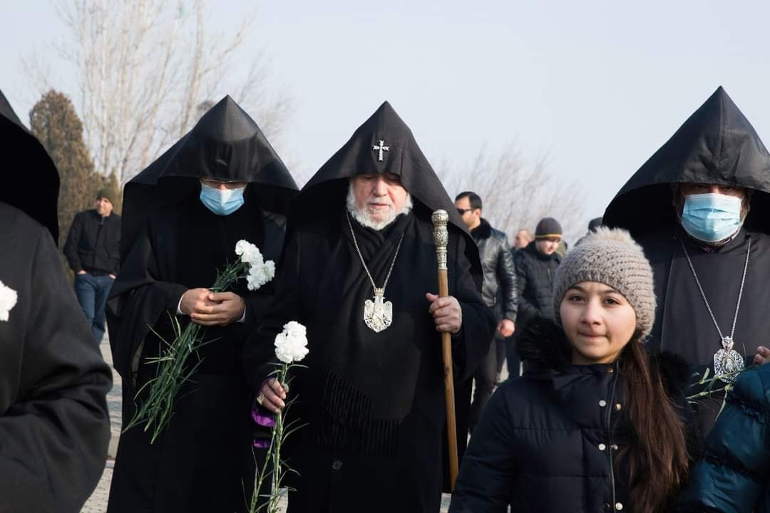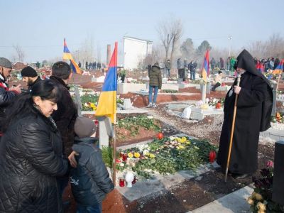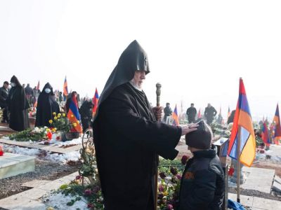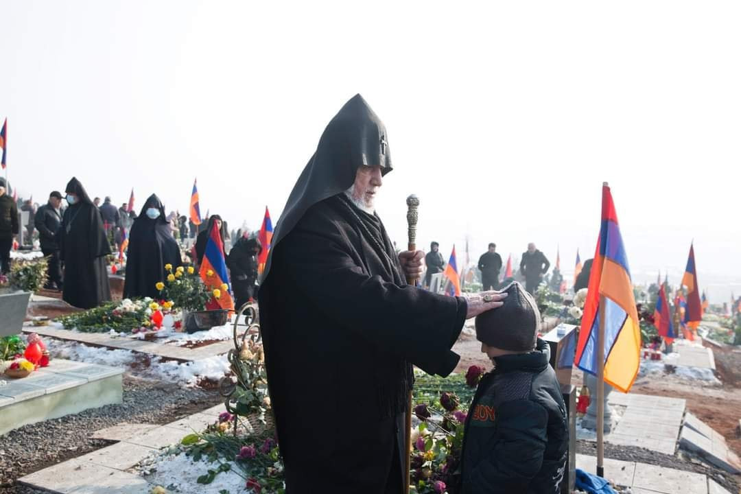 Military Cemetery Following the wreath-laying ceremony, His Holiness and the Bishops offered a prayer for the the peace and tranquility of the souls of the martyred heroes. His Holiness visited the graves of the heroic Armenian sons.