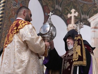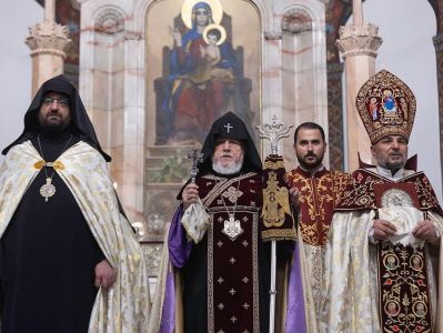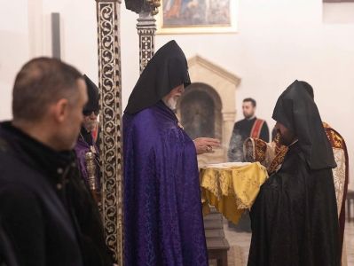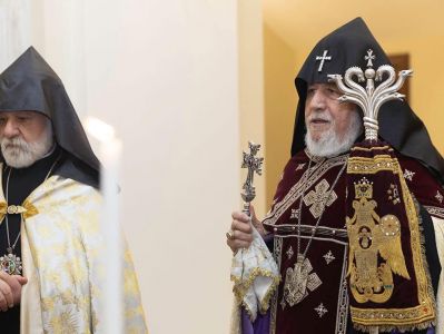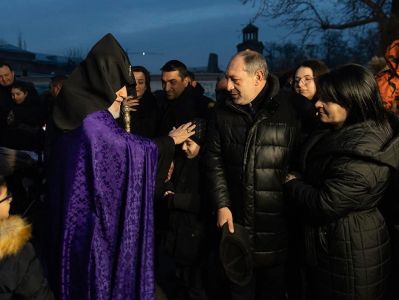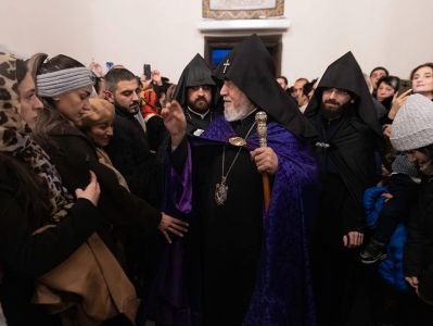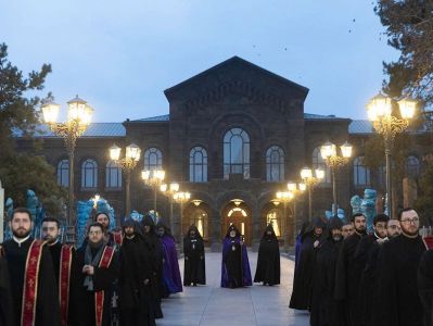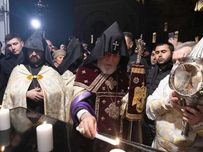 On January 5th, the joyous Feast of the Nativity and Theophany of our Lord and Saviour Jesus Christ, the solemn Christmas Eve Candlelight Divine Liturgy was celebrated in the Mother Cathedral of Holy Etchmiadzin. It was presided over by His Holiness Karekin II, Supreme Patriarch and Catholicos of All Armenians. The clergy of the Mother See, the President of Artsakh, Mr. Samvel Shahramanyan, state officials of the Republic of Artsakh, and Armenian pilgrims were in attendance.