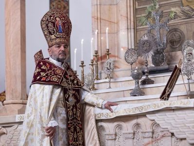 The celebrant of the Divine Liturgy was His Grace Bishop Vrtanes Abrahamyan, Primate of the Diocese of Artsakh.
