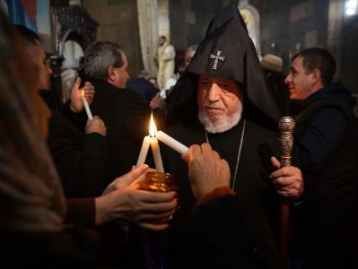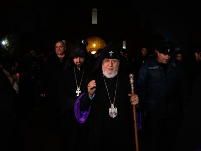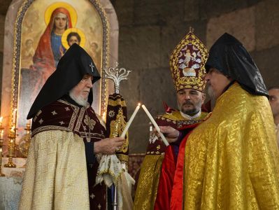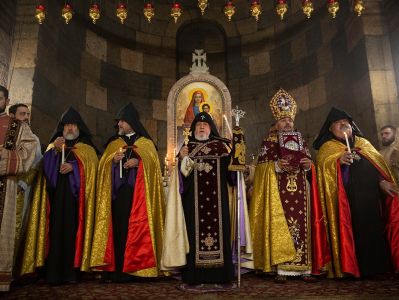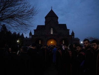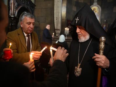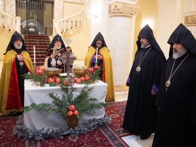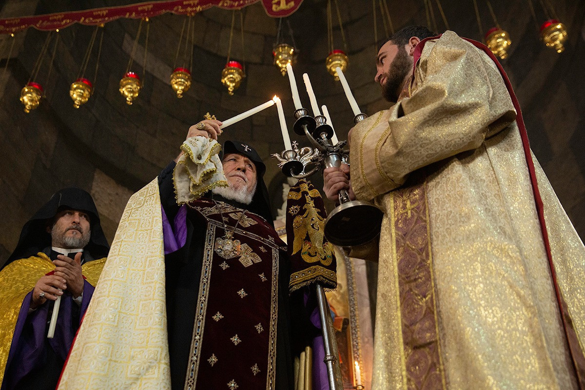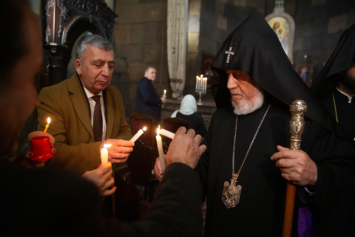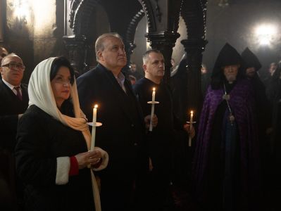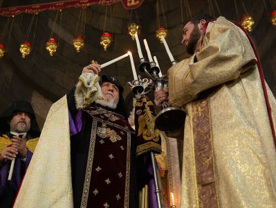 On January 05, on the Eve of the Feats of the Holy Nativity and Theophany of Our Lord Jesus Christ, under the presidency of His Holiness Karekin II, Supreme Patriarch and Catholicos of All Armenians; Candlelight Divine Liturgy was celebrated in the St. Gayane Monastery, which was attended by the members of the Brotherhood of the Mother See of Holy Etchmiadzin; Artsakh President Mr. Samvel Shahramanyan, Armenian statesmen and pilgrim Armenians.
