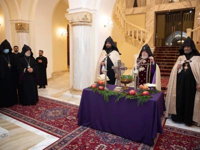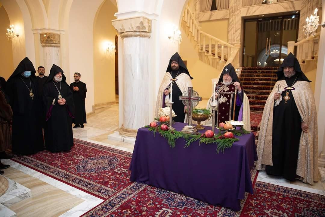 Then, the Brotherhood of the Mother See gathered in the Pontifical Residence, where under the presidency of His Holiness Karekin II, Supreme Patriarch and Catholicos of All Armenian; a Christmas Home-Blessing Service was offered.