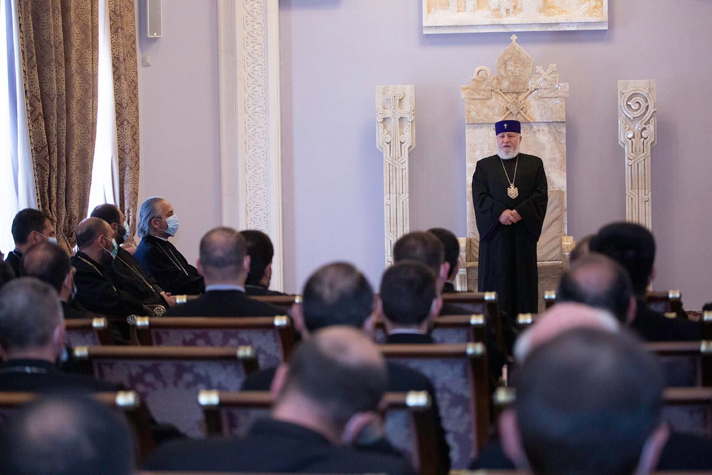 The Pontiff of All Armenians, expressing his gratitude for the congratulations and best wishes, conveyed his Pontifical Blessings to the attendees. His Holiness expressed his appreciation to his fellow clergy in the service being offered to the nation and the Church, as well as for the brave spirit shown in the 44-day War of Artsakh; exhorting them to continue their God-pleasing mission with zeal and devotion, to fulfill their duties and commitments with love, for the prosperity of the Homeland and the progress of the Armenian people.