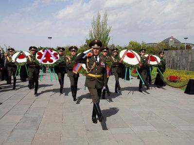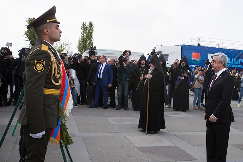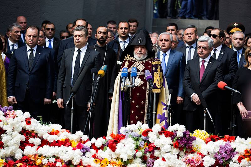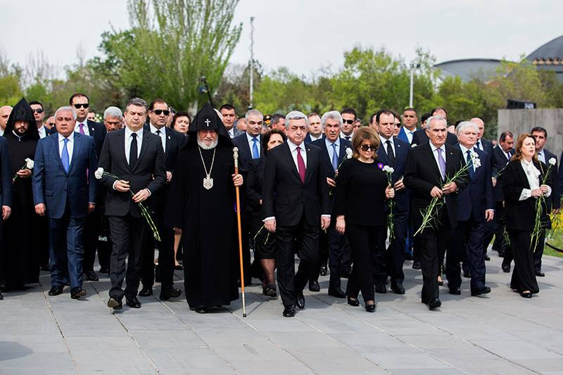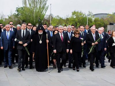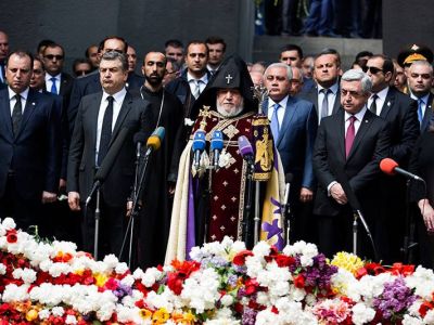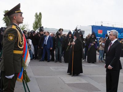 His Holiness Karekin II, Supreme Patriarch and Catholicos of All Armenians; visited the Tsitsernakaberd Memorial Complex, where under the presidency of His Holiness and with the attendance of the RA President Mr. Serzh Sargsyan, a prayer service was offered, through which they asked for the intercession of the Holy Martyrs of the Armenian Genocide. The service was attended by members of the Brotherhood of the Mother See; the State officials; heads and representatives of foreign diplomatic missions.
