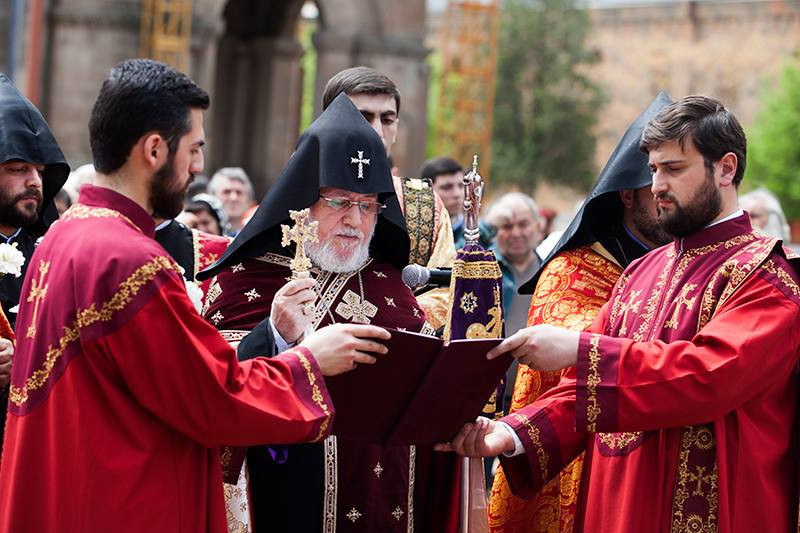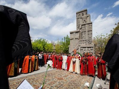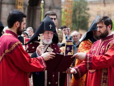 Following the Divine Liturgy, His Holiness Karekin II, Supreme Patriarch and Catholicos of All Armenians offered an intercession service in the courtyard of the Mother Cathedral, at the Memorial to the Genocide and Khachkar of Prayer and Oath. The Service was attended by Diocesan primates, Mother See benefactors and numerous pilgrims.