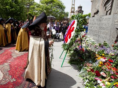 At the conclusion of the Divine Liturgy, at the Genocide Memorial on the grounds of the Mother See, under the presidency of His Holiness Karekin II, Supreme Patriarch and Catholicos of All Armenians; an order of intercession was offered.