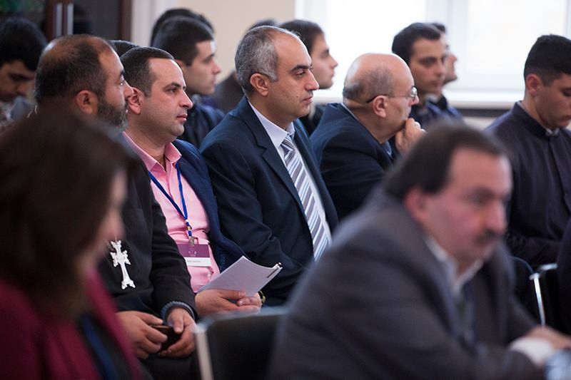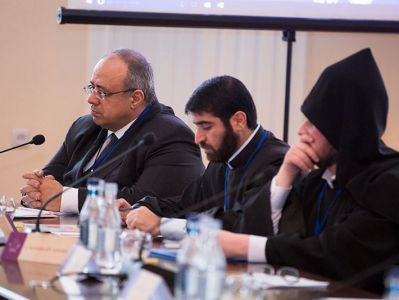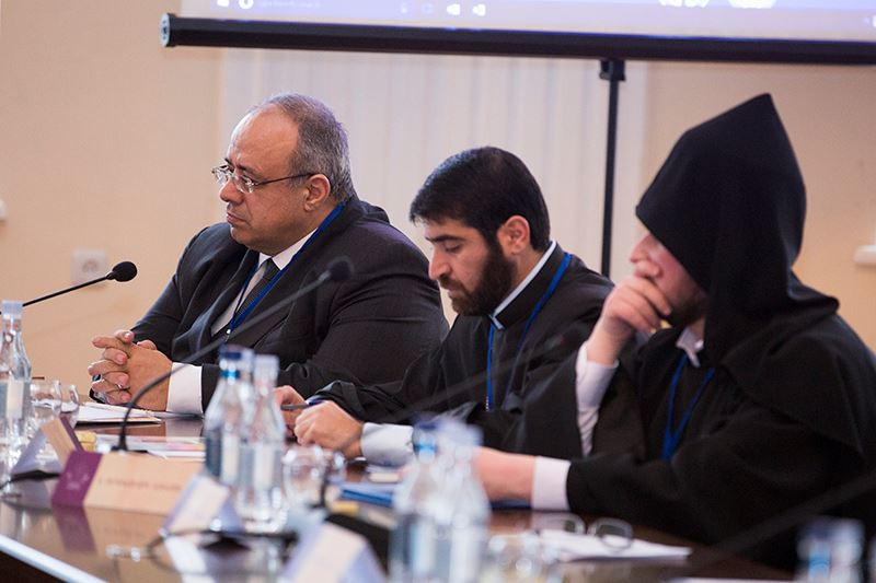 The conference began with the Lord's Prayer, following which Rev. Fr. Garegin Hambardzumyan, Dean of the Gevorkian Theological Seminary, gave opening remarks. Rev. Fr. Ararat Poghosyan, Director of the Vatche and Tamar Manoukian Library, welcomed the Conference participants.