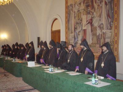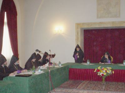 "During the two-day meeting, the Conference of Bishops, according great importance to the detailed discussion of these matters, applied to His Holiness with a request to regularly convene similar meetings once every two years. The goal of such meetings shall be to study and engage in comprehensive discussion of matters concerning the Armenian Church, and clarifying the official viewpoint of the Church on those issues. The Conference further asked that His Holiness approve of the establishment of an office in the Mother See to coordinate the work and activity of future Conferences of Bishops.