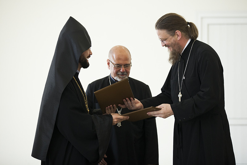 Father John, sharing his impressions, emphasized that he feels very good visiting the first Christian country, as he has an opportunity to become more closely acquainted with the Christian values. Referring to the agreement, he stated that the project is a unique opportunity to expand the cooperation that the St. Vladimir Seminary has had with the St. Nerses Seminary for many years.