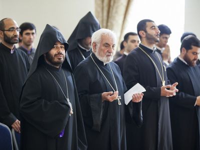 The ceremony was opened with the Lord’s Prayer and national anthems of the Gevorkian Theological Seminary were performed. Rev. Fr. Karekin Hambardzumyan, Dean of the Gevorkian Seminary gave opening remarks.