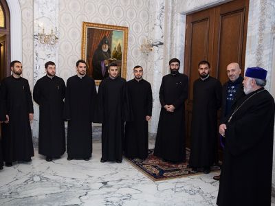 On December 03, His Holiness Karekin II, Supreme Patriarch and Catholicos of All Armenians; received and conveyed his paternal Blessings and best wishes to the Deacon's Choir of the Mother See of Holy Etchmiadzin and its conductor Mr. Shahe Keshishyan.