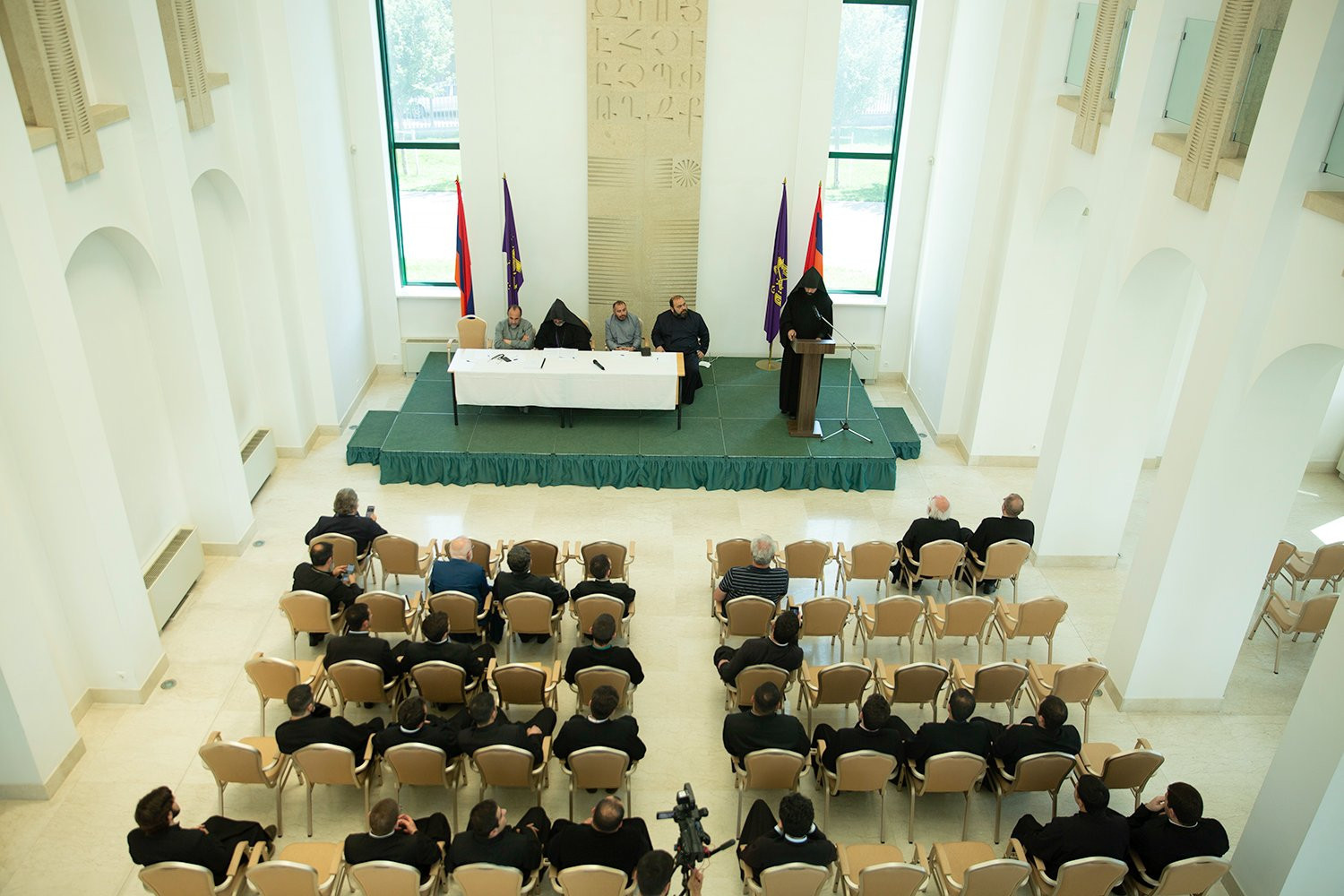 For the ecclesiastical degree of Archimandrite (Vardapet), Rev. Fr. Poghos Vardanyan, members of the Brotherhood of Holy Etchmiadzin presented his theses.