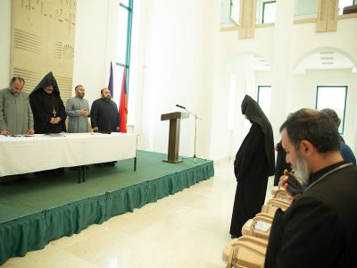 On October 28, under the presidency of His Holiness Karekin II, Supreme Patriarch and Catholicos of All Armenians, a defense of doctoral thesis was held in the ‘Vatche and Tamar Manookian’ Library of the Mother See of Holy Etchmiadzin.