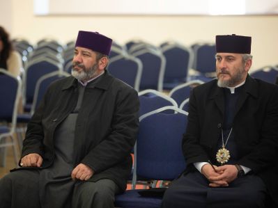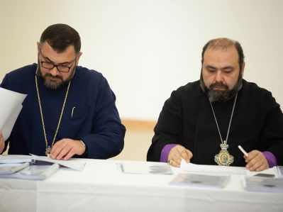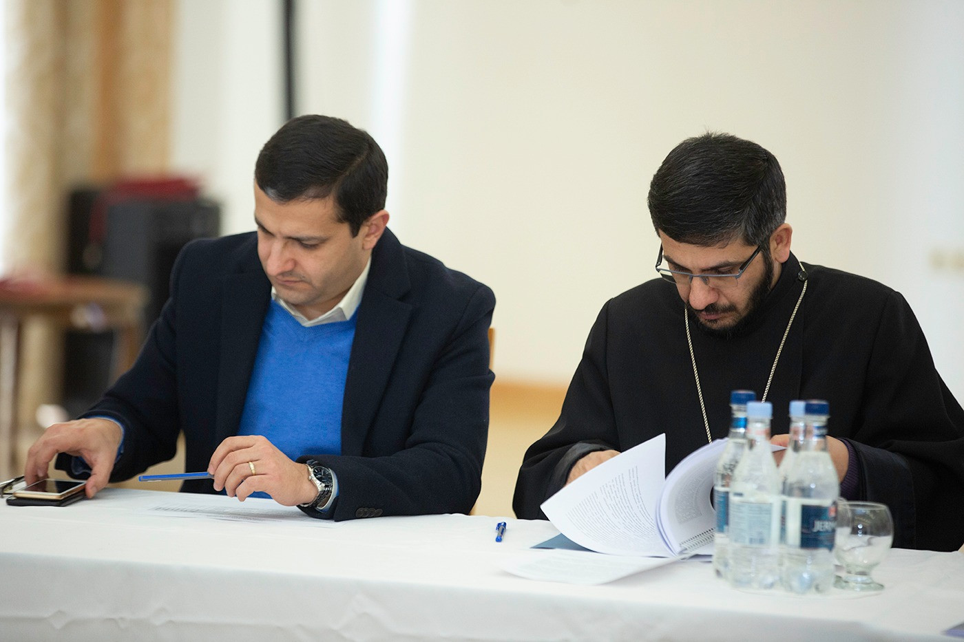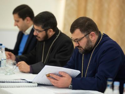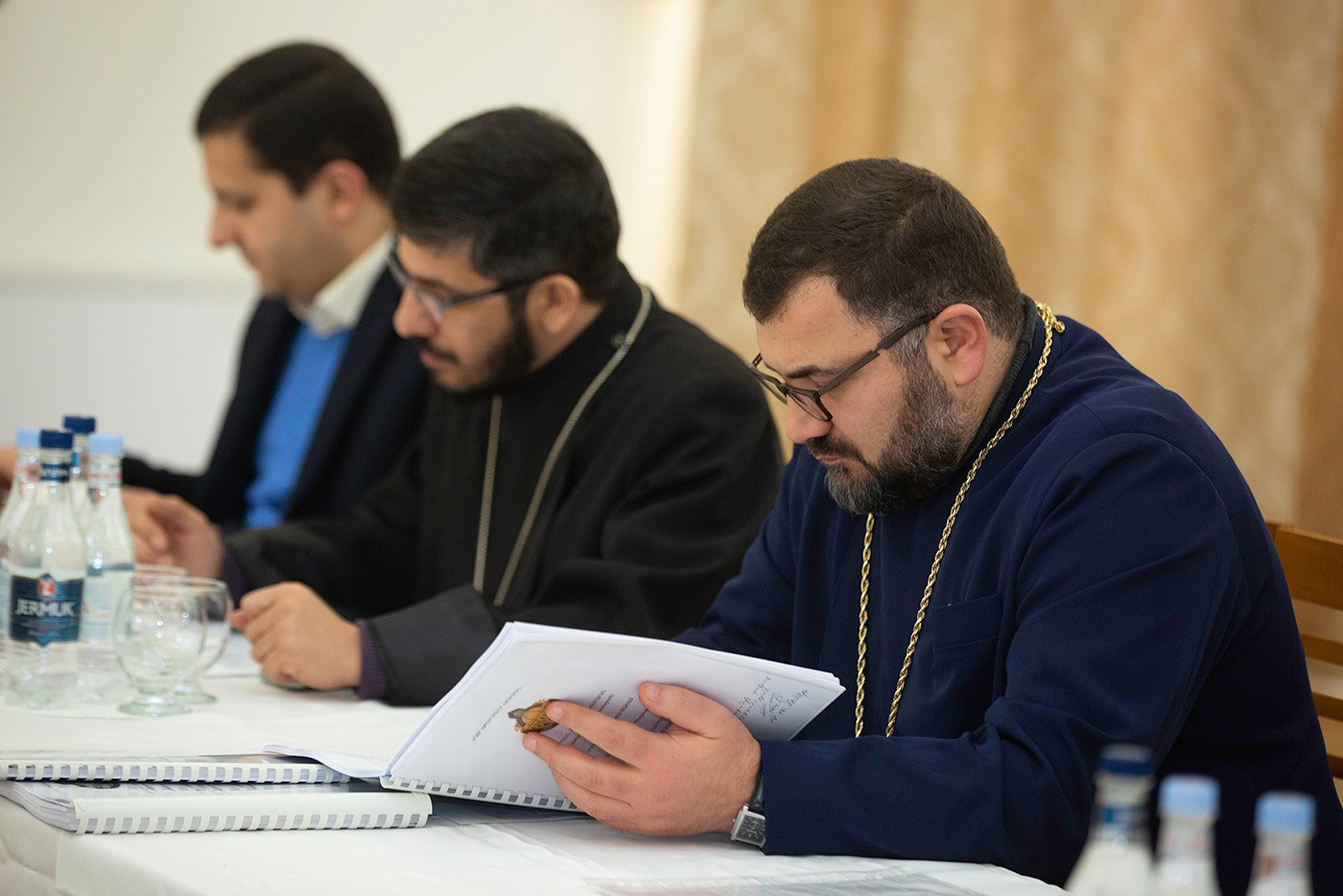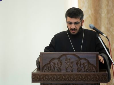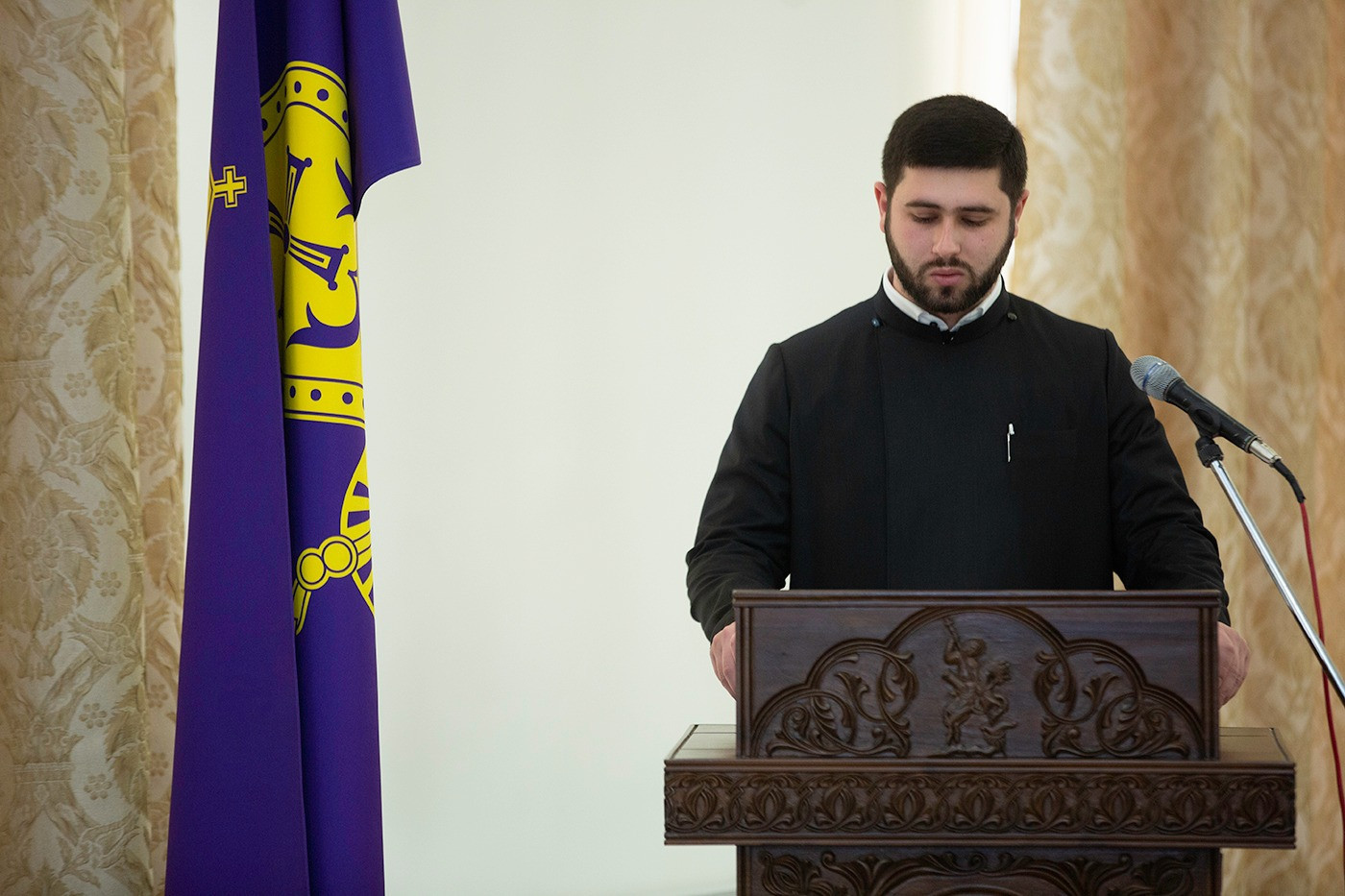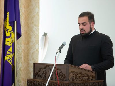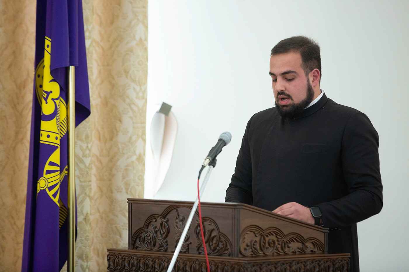 the defense of the Master's Degree of three deacons of the seminary's Practical Theology and Biblical Studies chairs took place in the Auditorium of the Gevorkian Theological Seminary.