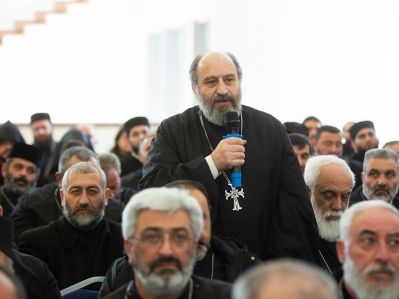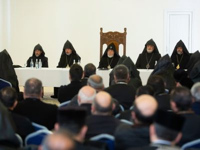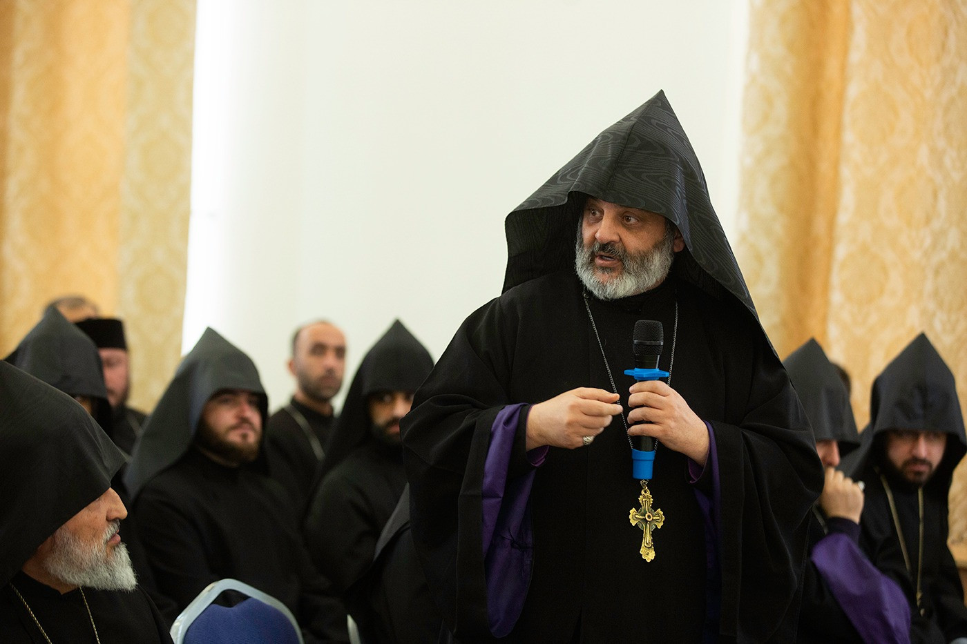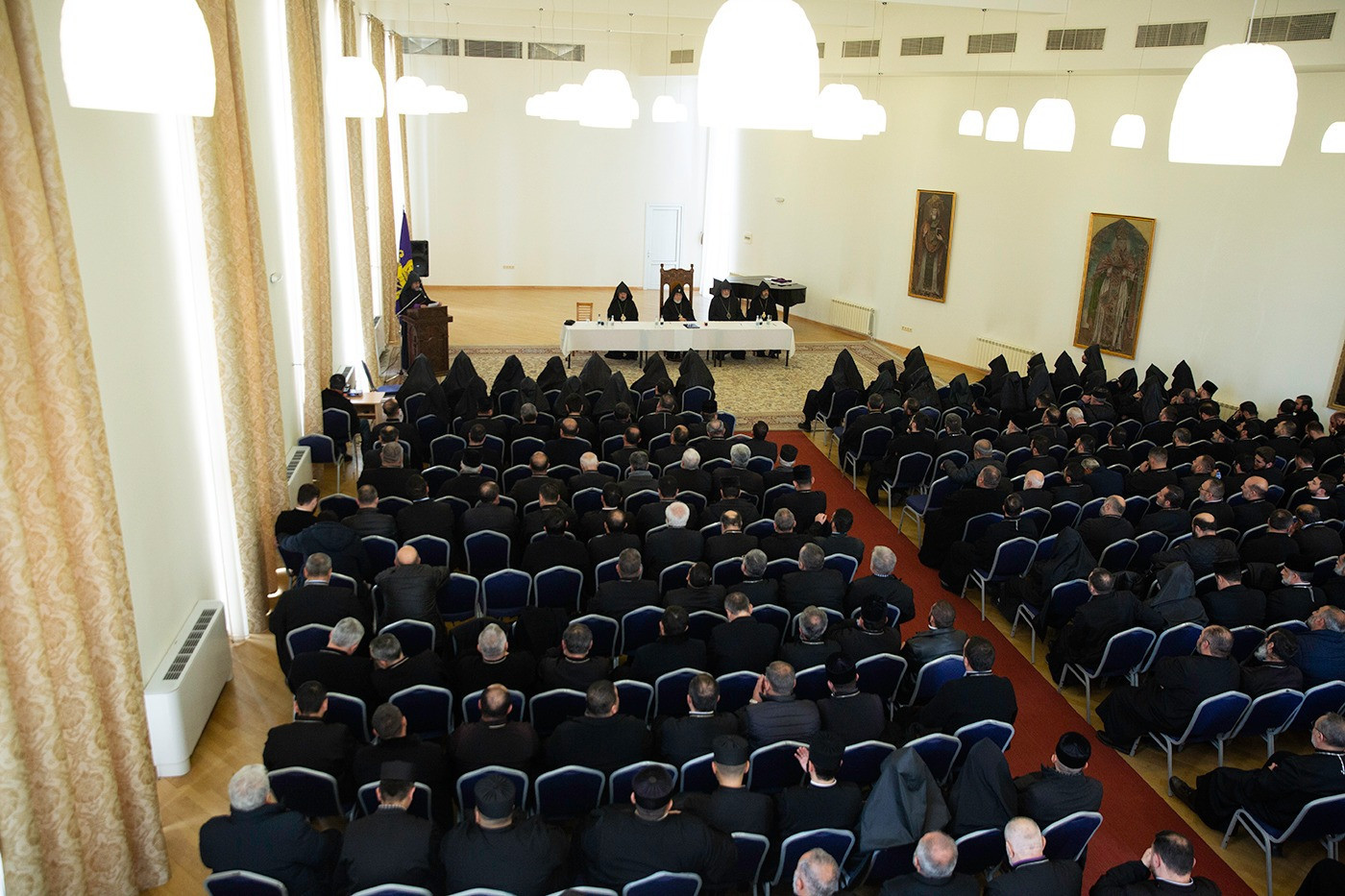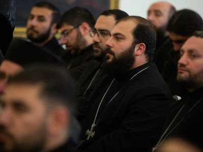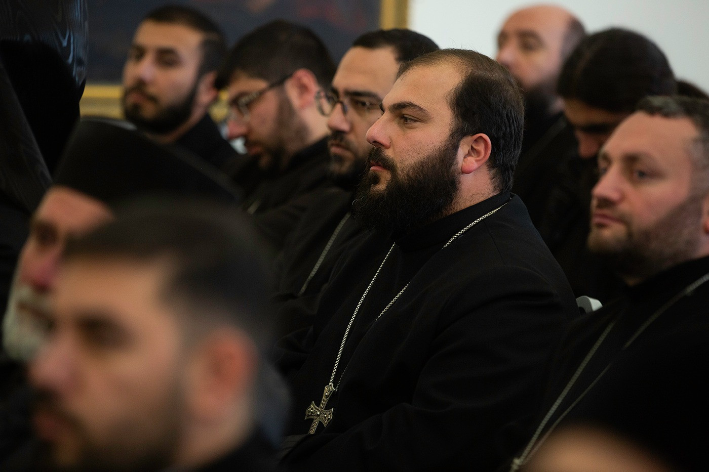 "Dear spiritual fathers, it is the commitment of our Holy Church at all times, remaining faithful and devoted to the doctrine of our Lord Jesus Christ and the inviolable Christian value system, to shepherd and care for the Armenian nation, to strengthen the spirit of "for the sake of faith and for patriotism", to serve in the building of a peaceful and safe homeland, by educating Armenians and strengthening national consciousness, contribute everywhere to the pristine preservation of Armenian identity and the steadfastness of our nation and homeland", stated His Holiness Karekin II, emphasizing the sacred mission of the clergy to guide the people entrusted to their care in God-pleasing ways and lead them to salvation.