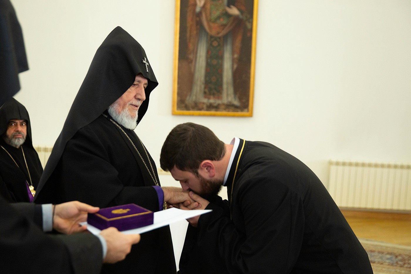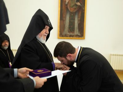 Citing the command of the Apostle Paul, "For God has not given us a spirit of fear, but of power, love and understanding" (2 Tim. A 7), the Catholicos of All Armenians urged the audience: "With that spirit of power, love and sensitivity, we must continue our spiritual mission, strengthening the faith and hope for the future in the hearts of Armenians, sowing the seeds for the vision of our bright future. The same is the mission, the same is the responsibility and duty of your present-day Ghevondian priests, so that with your tireless and consistent work, our people can be brought out of this post-war depression and their patriotic and national life firmly re-anchored on the patriotism that has been tempered by the trials of centuries. Our national-spiritual value system, which is sprinkled with centuries-old sufferings and spiritual courage of our people and is the true key to the victory of our collective will and spirit, should once again become the cornerstone of the rebuilding of our nation's dignified life”.